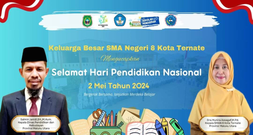 Keluarga Besar SMAN 8 Kota Ternate Provinsi Maluku Utara mengucapkan Selamat Hari Pendidikan Nasional 2 Mei 2024.